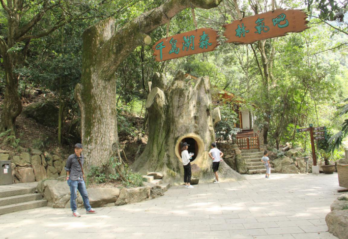 下午我们去的地方是千岛湖的森林氧吧,到达氧吧的地方,只见门前写着“千岛湖森林氧吧”七个大字,深深地吸了一口气,一股新鲜的空气直沁肺腑。